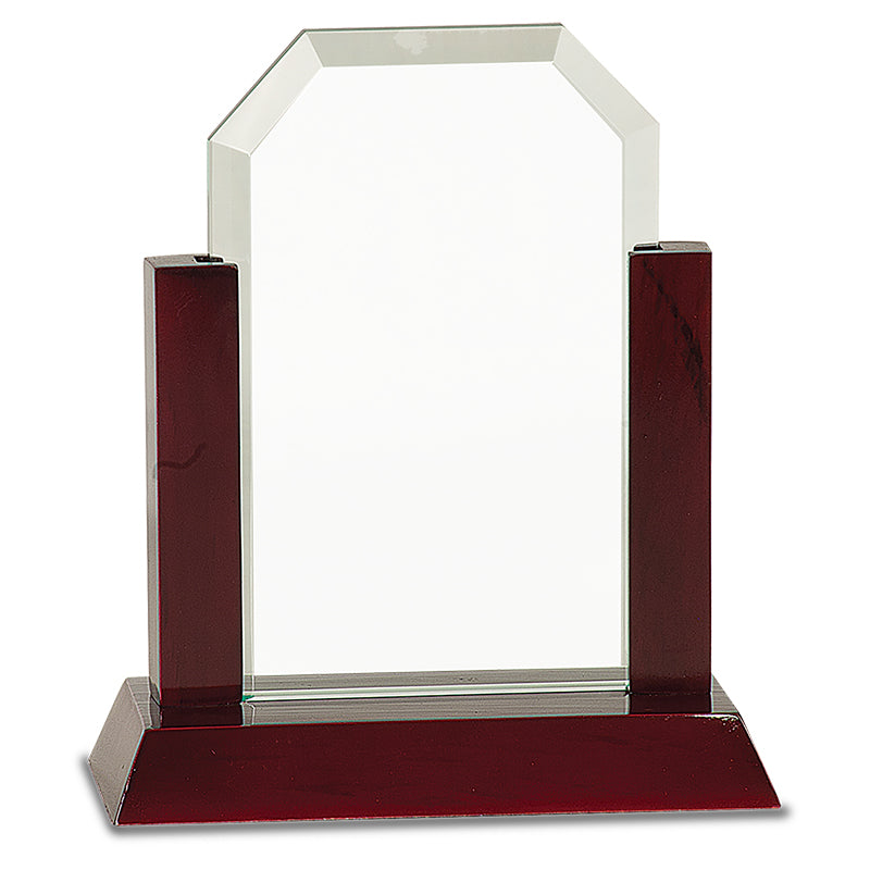 Gateway Jade Clip Corner Glass Award with Rosewood Finish Base