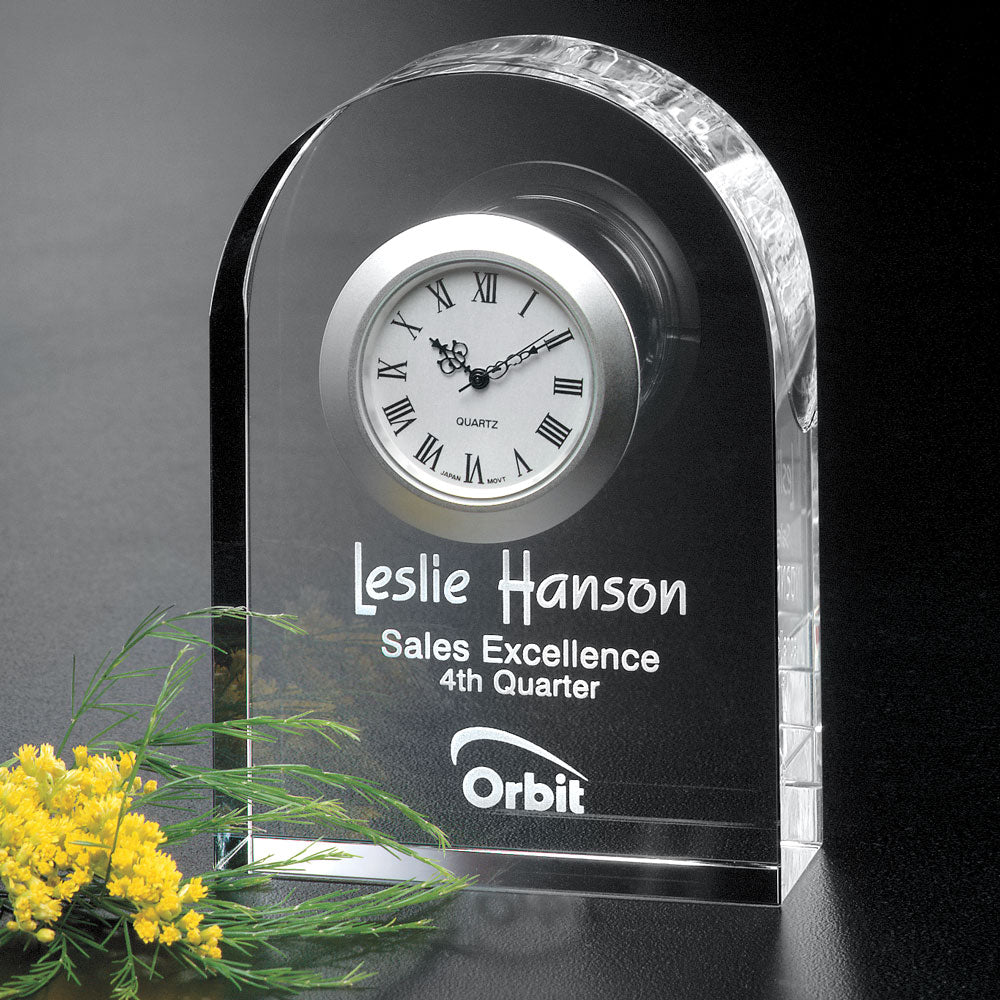 The unsurpassed beauty of optical crystal, combined with an elegant timepiece and a personal message, make the Rutledge Clock a welcome desk accessory.